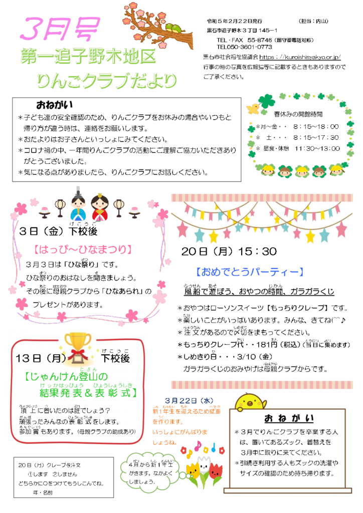 第一追子野木地区りんごクラブだより令和5年3月号