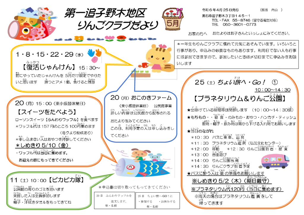 第一追子野木地区りんごクラブだより令和6年5月号