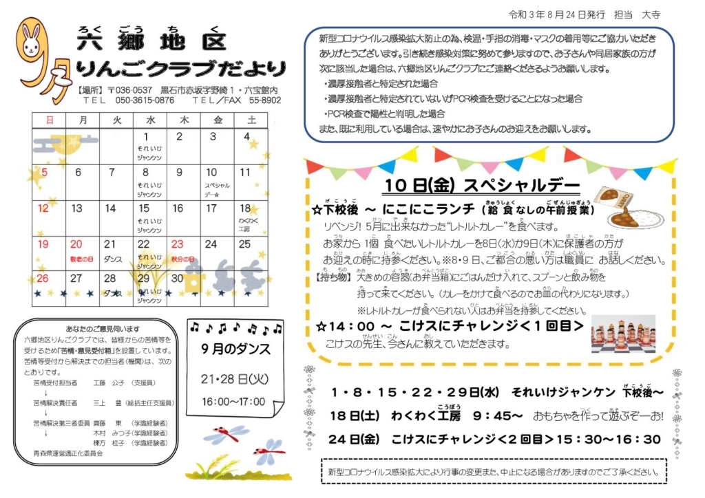 六郷地区りんごクラブだより令和3年9月号