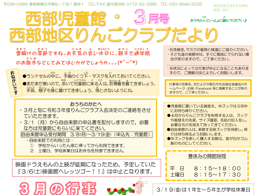 西部地区りんごクラブだより令和3年3月号