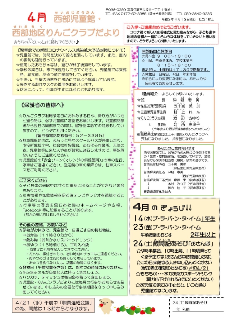 西部地区りんごクラブだより令和3年4月号
