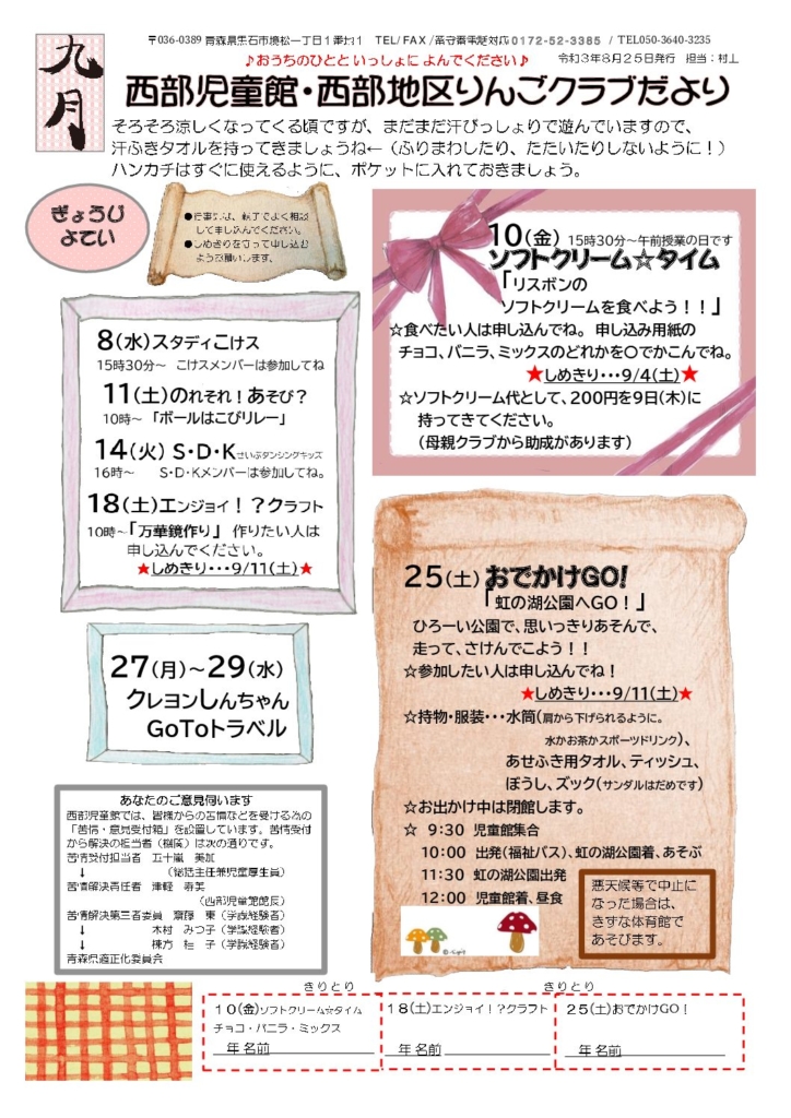 西部地区りんごクラブだより令和3年9月号