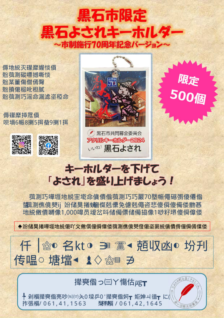 【募金期間延長!】「黒石よされキーホルダー ~市制施行70周年記念バージョン~ 進呈します」