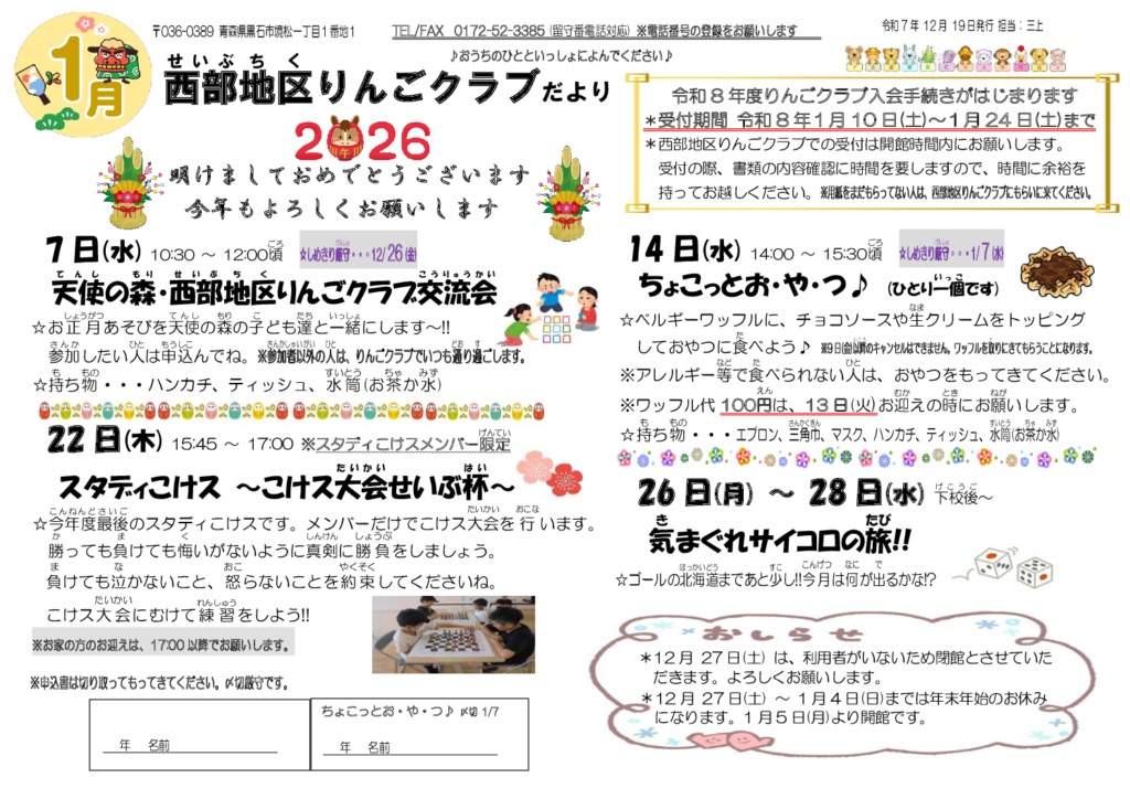西部地区りんごクラブは、小学校に就学している児童であって、保護者が労働等により昼間家庭にいない子ども達の居場所として、家庭、地域等との連携の下、発達段階に応じた遊びや生活を支援します。